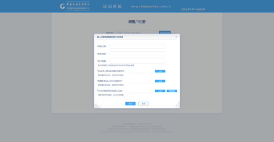 1、未入市机构,需在远程培训系统注册界面,点击本币交易系统管理员用户名下方的“申请”按钮,按要求填写并提交申请材料,交易中心审核通过后机构系统管理员用户名将以电子邮件形式通知申请人。如有疑问,可拨打4009787878-2-3-0咨询。