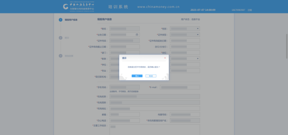 2.用户信息提交。用户信息填写完整后,点击“提交”按钮 ,可以看到提示框 。如下图所示: